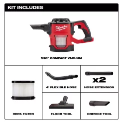 Vacuum Cleaners Milwaukee M18 18-Volt Lithium-Ion Cordless Compact Vacuum (Tool-Only)