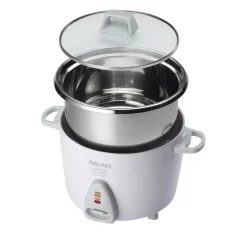 Cookers AROMA Simply 6-Cup Stainless Steel White Rice Cooker With Measuring Cup And Serving Spatula