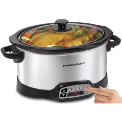 Cookers Hamilton Beach 4 Qt. Black Chrome Slow Cooker With Temperature Settings And Glass Lid
