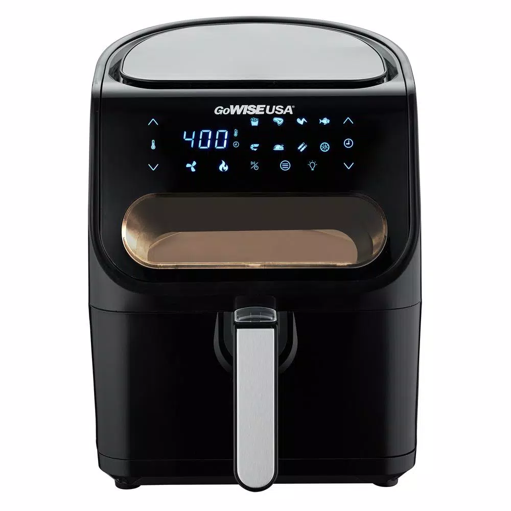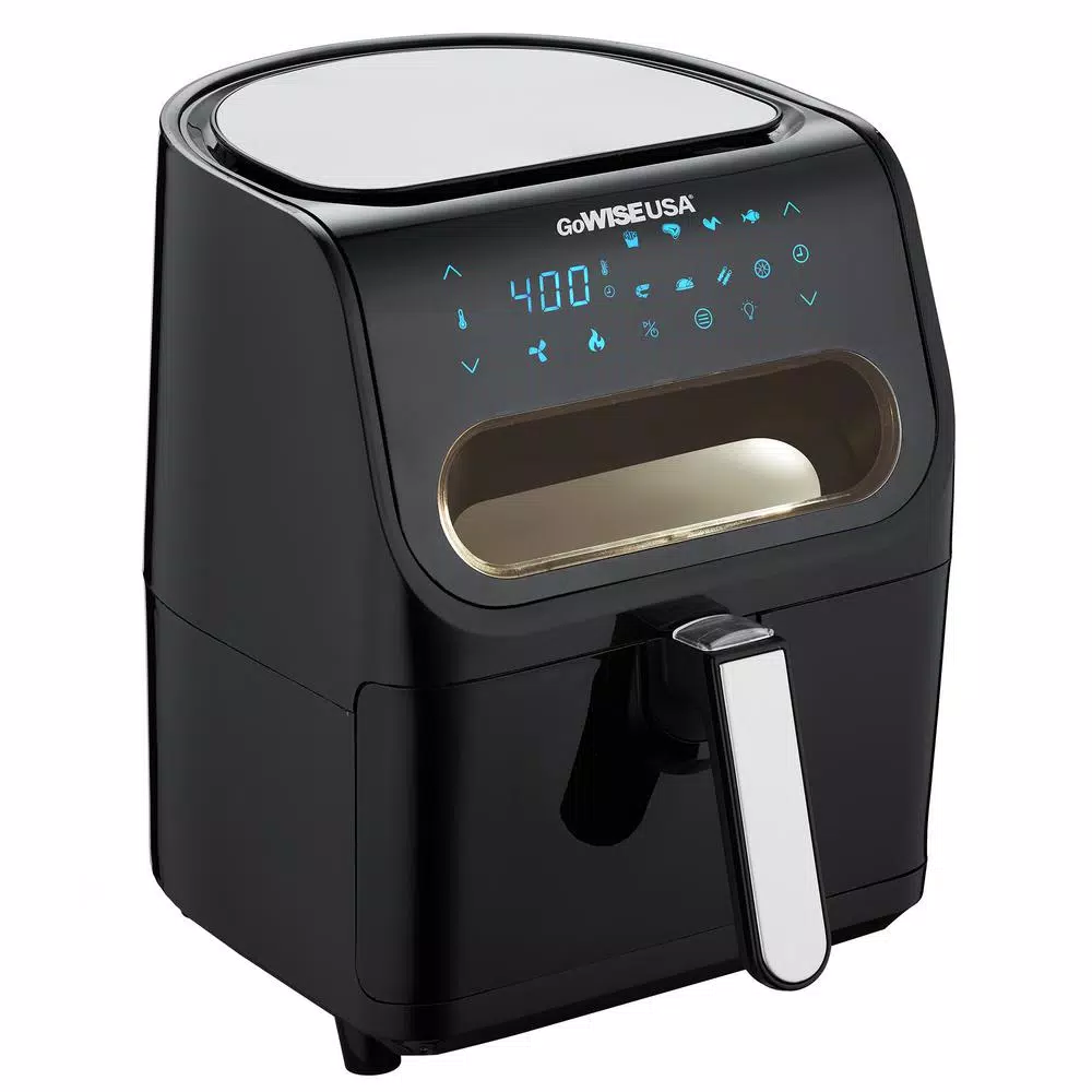 - Designed to save time and space, the GoWISE digital air fryer has 8-built-in presets – fries, steak, wings, fish, shrimp, chicken, kebabs and dehydrate, so you can enjoy your snack or meal quicker with the touch of a button look at what’s cooking without stopping the cooking cycle