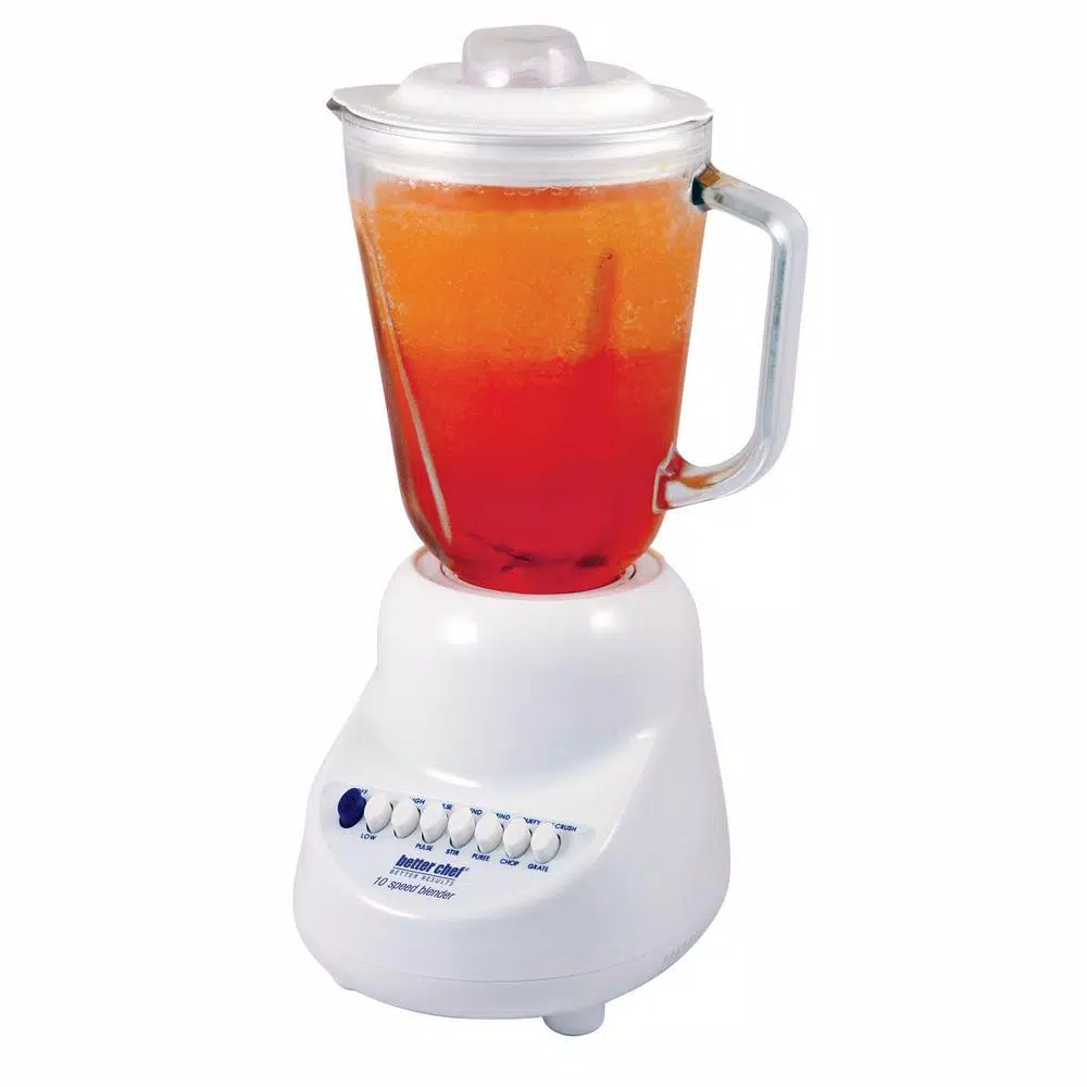 The Better Chef 10-Speed Blender features 8-continuous speeds plus 2-pulse speeds to allow for mixing, whipping and chopping. The powerful motor has the ice crushing strength that will blend most ingredients with ease. The large capacity glass jar ensures you can blend whatever you need. The removable filler cap lets you add ingredients easily.