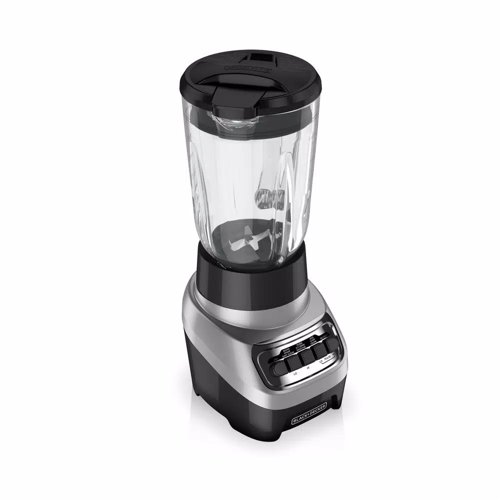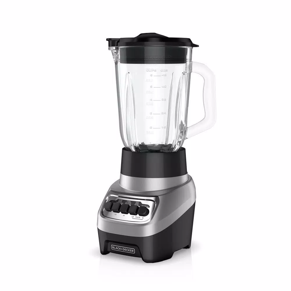 It’s all in the name with the BLACK, DECKER PowerCrush Multi-Function Blender. This premium blender uses 700W of power to pulverize ice and other tough ingredients to create delicious smoothies, shakes, and more. The QuadPro Blade is versatile enough to make iced drinks, soups, purees, and even crumbs (bread, cookie, or cereal) to use in other recipes. Use the intuitive four speed control buttons to find the perfect consistency. Then enjoy easy pouring with the hinged reclose able pour spout and PerfectPour glass jar. Plus, cleanup is simple with the Easy Clean function that uses the motion of the blending blade to loosen caked-on food, and all removable parts are dishwasher-safe. Fast and powerful blending, no-mess serving, and easy cleanup- BLACK, DECKER PowerCrush is the only blender you need. Peak performance refers to the maximum power recorded for 100ms during blending.