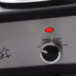 With the New MegaChef Triple 2.5 Qt. Slow Cooker and Buffet Server in Brushed Silver and Black Finish with 3 Ceramic Cooking Pots and Removable Lid Rests will be your helping hand whenever you need to prepare multiple meals simultaneously with-out the hustle and bustle of a restaurant kitchen. With this incredible kitchen tool, you will be able to not only cook 3 individual meals at the same time without having to monitor the stove, but you will also be able to keep those meals hot and serve them to your family and friends or guests and coworkers without breaking a sweat. This stunning slow cooker and buffer server features 3 Ceramic 2.5 Qt. Cooking Pots with their own settings allowing you to control the heat level for each meal you cook. With the included detachable lid rests, your guests can easily serve themselves hassle free. Once you try serving meals with such ease it may be difficult to go without this unit again at any gathering.
