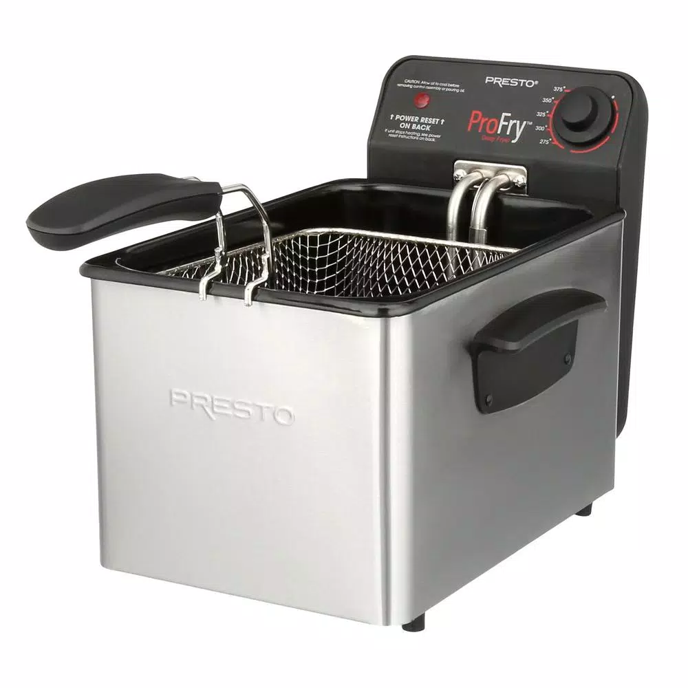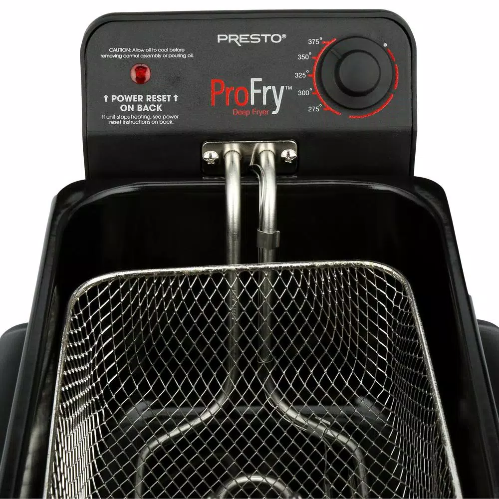 - Select from a variety of frying temperatures with the adjustable thermostat
