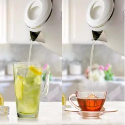 Looking for one solution that keeps the temperature for both your hot and cold drinks? Then Ovente’s dual-purpose kettle and pitcher is the perfect pick for you! Made out of durable, BPA-free plastic and fortified with stainless steel, this kettle will fill your needs, whether for a cup of hot coffee or tea or for your favorite iced drink. The double-walled stainless steel interior keeps the kettle’s body and handle cool and safe to the touch. This corded kettle can boil 1.7 liters of hot water within minutes, beating regular heating pots. It can also be used as a pitcher for cold drinks so it’s perfect during winter or rainy days while also great to beat the summer heat! With its Auto-Shut Off & Boil-dry Protection, this kettle automatically turns off when the water in the pot has finished boiling or when there is no water inside. It also features a concealed heating element for easy cleaning due to reduced mineral and limescale buildup!