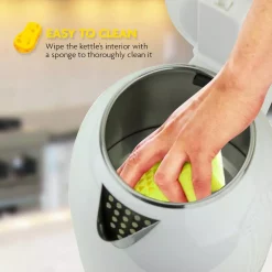 - EASY TO CLEAN Its wide-mouth spout makes its stainless steel filter easy to clean, and the exterior can be wiped clean with a damp cloth. To deep clean, simply mix 3 tbsp vinegar or lemon with water and leave for a minimum of 5 hrs after boiling