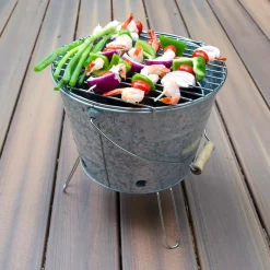 Masonware Galvanized Portable Beach Grill can go anywhere. Has folding legs so it can into a 12″ x 12″ square space. Also perfect for camping or just easy backyard grilling.