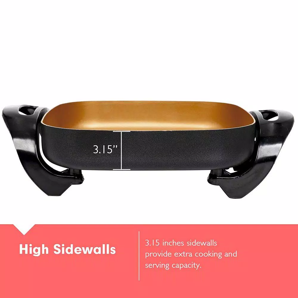 - Large 16 in. x 12 in. x 3 in. profile lets you fry chicken for the whole family, great for family cooking or entertaining buffet style