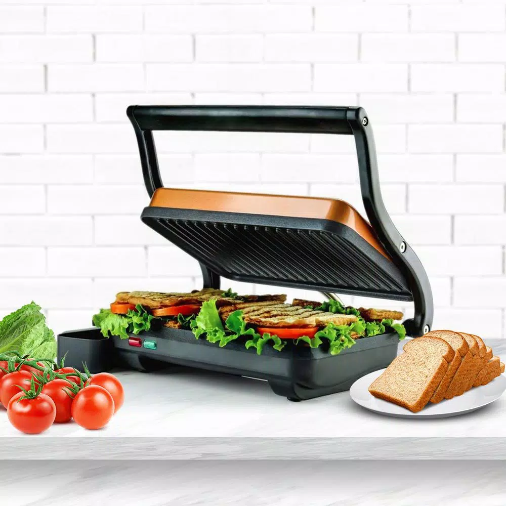 Turn ordinary dishes and bread into mouthwatering ones this electric grill will transform you into a culinary hero real quick. With this, you’ll discover those grilling appetizing dishes is not as hard as it sounds. You can make smoking hot Panini for breakfast and delectable finishes and steaks for dinnerware with minimal effort. equipped with safety features apart from the cool-touch handle and anti-skid feet so you would be sure that you would keep accidents at bay. evenly cooks food, say goodbye to unevenly cooked meat. Our non-stick coated plates cook meat thoroughly so that each forkful of steak is savory to the last bite. since it is slim and compact enough that it takes little space from your kitchen countertops, you can carry it to your trips whenever you want to. The Red light indicates that the grill is preheating, and the green light tells you that the press is ready for cooking. These idiot-proof settings make this perfect for everyday use. keeps your food healthy with this Panini grill, appetizing dishes would always be guilt-free. You don’t have to use cooking oil, and more So, it drains the extra fat right to the drip tray while keeping the tenderness and rich flavors of the food. hassle-free cleaning since the grill has a drip tray that catches all the grease and juices from the food, cleaning It requires little to no effort. Just wipe the plates with a sponge or cloth dampened in soapy water and let them dry.