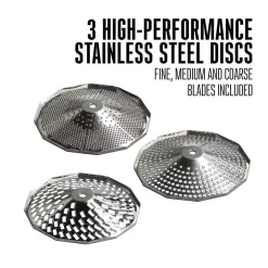 For generations, people have relied on manual food mills to create smooth, artisanal purees, sauces, and soups. Today the Weston Electric Food Mill does everything a classic food mill can do, plus it saves you time and effort by doing the hard work for you. With 3 stainless steel discs for fine, medium, and coarse textures, you’ll achieve smooth results for everything you mill, from applesauce and tomato soup to fluffy mashed potatoes and homemade baby food. Unlike food processors and blenders, which make the texture difficult to control and require that you peel first and strain out unwanted seeds, the Weston Electric Food Mill does it all in one step. If youve never tried a food mill before, its time you did. Whether youre a home chef, canner, or gardener, the Weston Electric Food Mill will give you more versatility and control over all the fresh food you serve your family.
