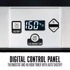 - Digital control panel features 48 hour timer with auto shutoff and adjustable thermostat (100°F -160°F / 38°C – 71°C)