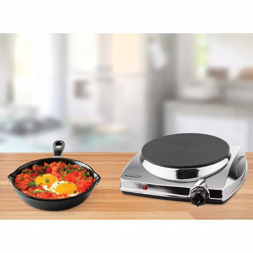 Ideal for small kitchens, offices or dorm rooms, the Brentwood Appliances’ TS-337 1,000 watt Electric Single Burner Hot Plate makes compact cooking a breeze. This small but powerful appliance features adjustable heat. The small and lightweight design takes up little counter space yet heats up fast with a cast iron heating element.