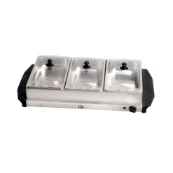 Keep the party going with the Elite Stainless Steel Buffet Server and Warming Tray. A total of three 2.5 Qt. buffet trays and a flat warming tray warm hors d’ oeuvres and other foods like fluffy mashed potatoes and rich, saucy gravy. Adjustable temperature settings give you full control. Great for parties and entertaining guests.