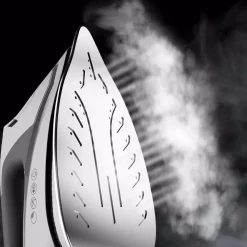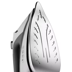 - Stainless steel soleplate – the durable soleplate glides easily over all fabric types, and features a narrow tip for precise ironing around buttons and collars