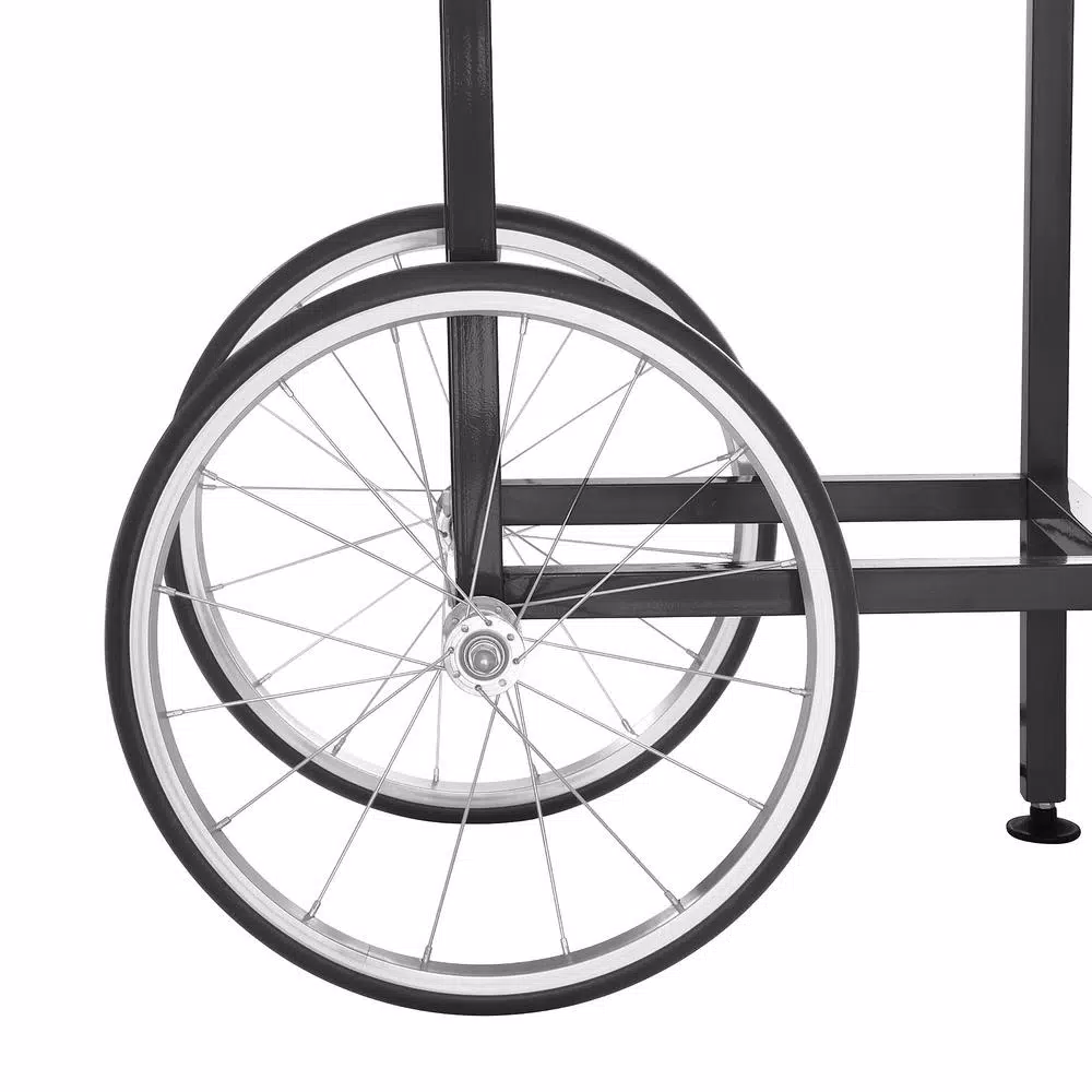 - MOBILE CART- This tabletop machine latches onto the included serving cart with two 16 inch bicycle style tires for smooth mobility. It also features a working shelf, a push handle, a storage cabinet for supplies and adjustable feet for added stability.