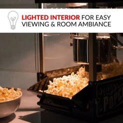 - Lighted interior: lighted interior creates a fun and pleasant room ambiance and allows you to watch your popcorn pop