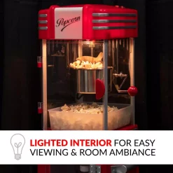 - Lighted interior: lighted interior creates a fun and pleasant room ambiance and 360-degree clear view popping chamber allows you to watch your popcorn pop