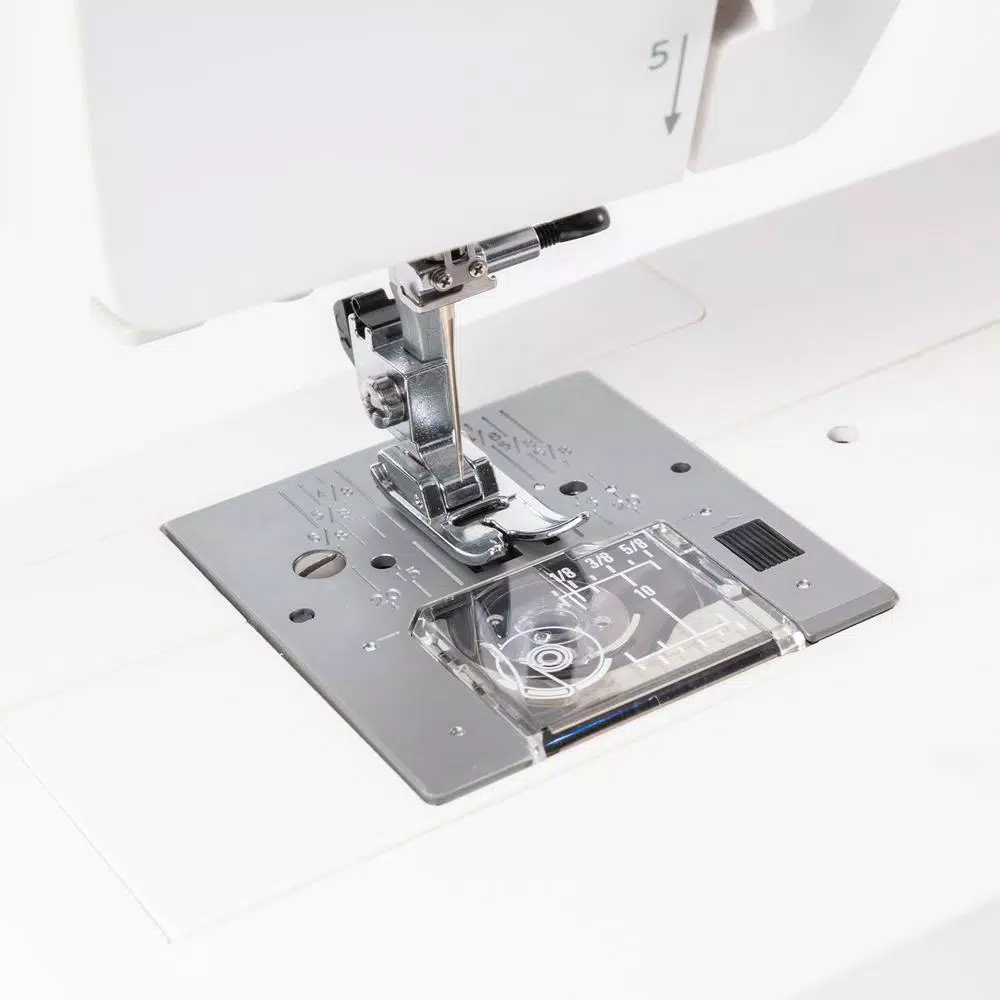 - Foot pressure adjustment dial – great for thicker fabrics, seams, or quilts