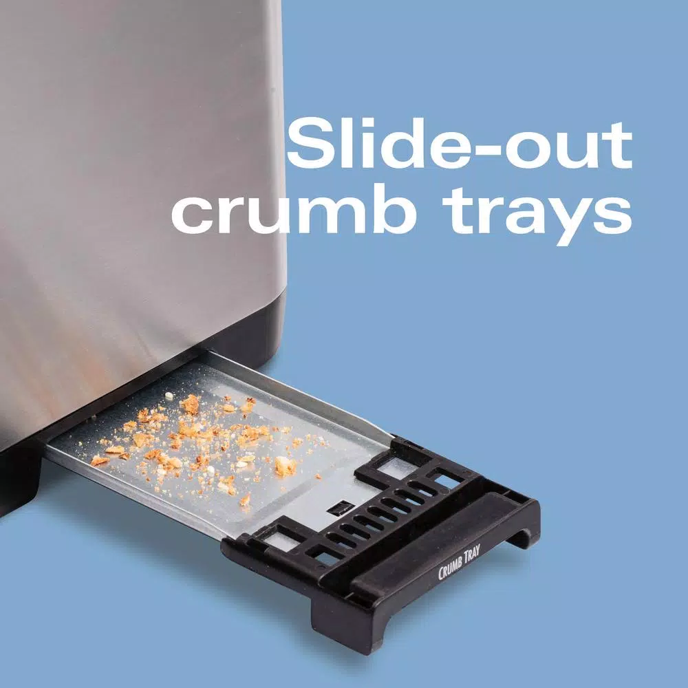 The Hamilton Beach Professional 4 Slice Toaster helps you make great meals even on busy mornings. Four wide, deep slots and bagel, defrost and reheat settings easily accomodate oversized artisan breads, frozen waffles, pancakes, bagels and more. The toast boost feature lifts smaller foods, like English muffins, up a little higher for safer, effortless removal.