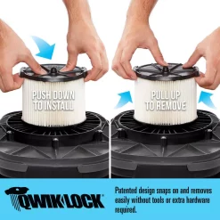 The RIDGID 1-layer pleated paper filter is designed to capture everyday dirt and debris such as sawdust, dirt and typical debris found in a basement, garage or vehicle. The filter fits all RIDGID wet dry vacs 3 to 4.5 Gal. It’s patented QwikLock feature allows the filter to easily snap on and off the vacuum for cleaning.