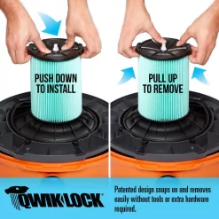 - HEPA-level filtration is achieved when the VF6000 HEPA media filter and VF3602 cyclonic dust bag are installed together in select RIDGID 12 Gal. to 16 Gal. wet dry vacs